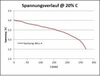 Endlich einmal Akkus, die halten was sie versprechen. Allein schon die gemessene Masse von 47g war vielversprechend (ein anderes Produkt hier bei BG hatte gerade einmal 24g). Bei einer Belastung mit ca. 0,65 A (etwa 20% von C, dargestellt durch R von 5,6 Ohm) konnte ich eine gespeicherte Energie von 10,12 Wh messen (siehe Grafik anbei). Das entspricht 2810 mAh und kommt damit der behaupteten Kapazität von 3000 mAh sehr nahe. Ausgeliefert wurden die Zellen mit 3,43 V.