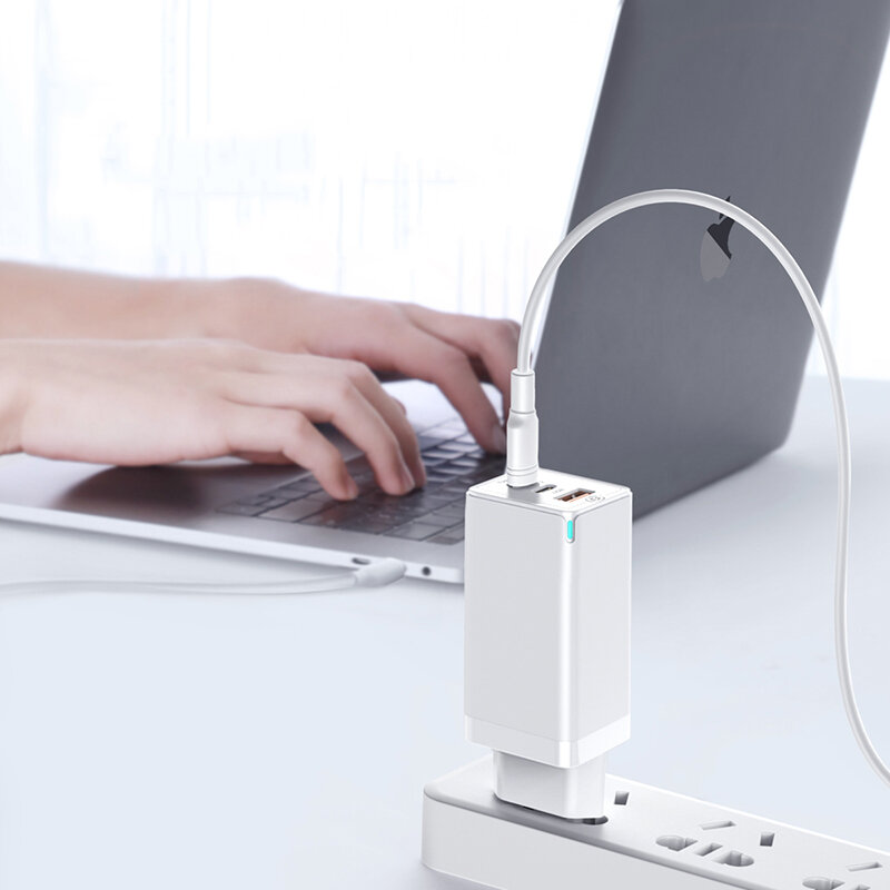 • Baseus GaN 65W QC4.0 PD3.0 Triple sortie 2 * Type-C 1 * Mini chargeur mural USB Chargeur de voyage universel EU US Plug pour Samsung S10 Matebook pour iPhone 11 Pro Max Notebook Tablet HUAWEI P30Pro Xiaomi Redmi