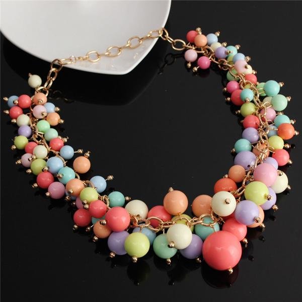 • Bonbons couleur multicouche perles ras du cou déclaration collier pendentif