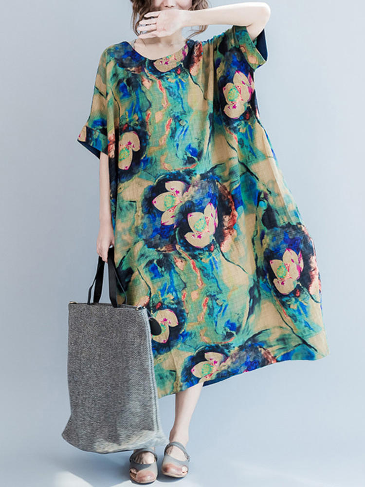 • Casual S-5XL Femme Loose Lotus impression robe