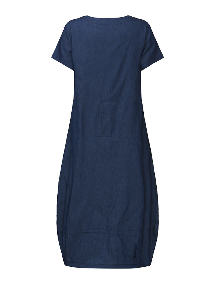 Femme Maxi Robe Occasionnelle Lâche de Denim Poche Lanterne COD