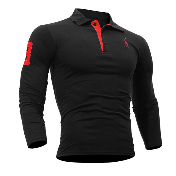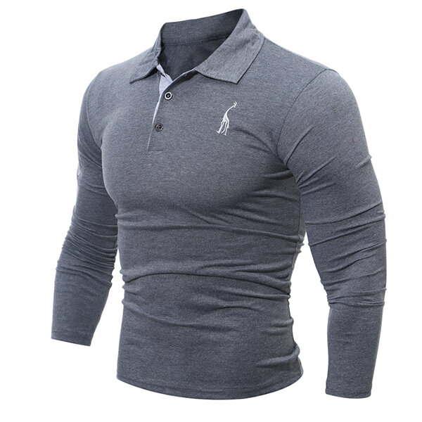 Fashion Deer T-shirt brodé pour hommes Casual Couleur unie Slim Fit T-shirts à manches longues COD