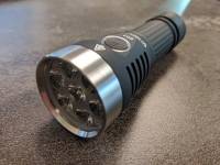 So bright! XPL emitters with a 21700 high drain battery lights up a room like daytime. cool aux LEDs. fairly big hot spot with plenty of spill. the UI is great, plenty of programmable options.