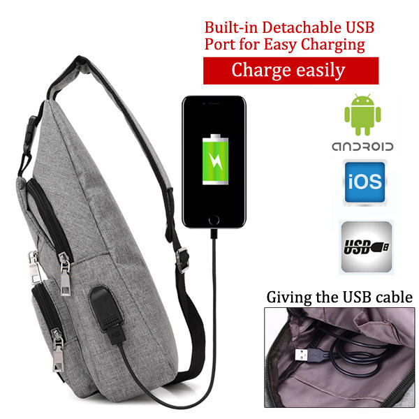 Homme Casual Sac en Bandoulière Outdoor Voyage pour Hommes Sac à Poitrine Crossbody avec Port USB COD