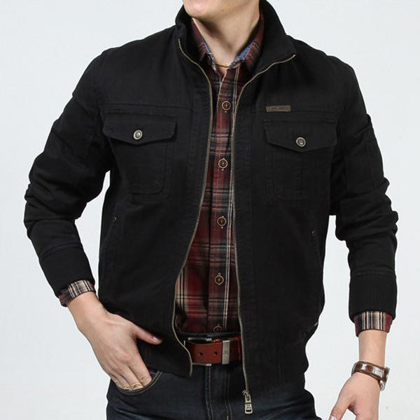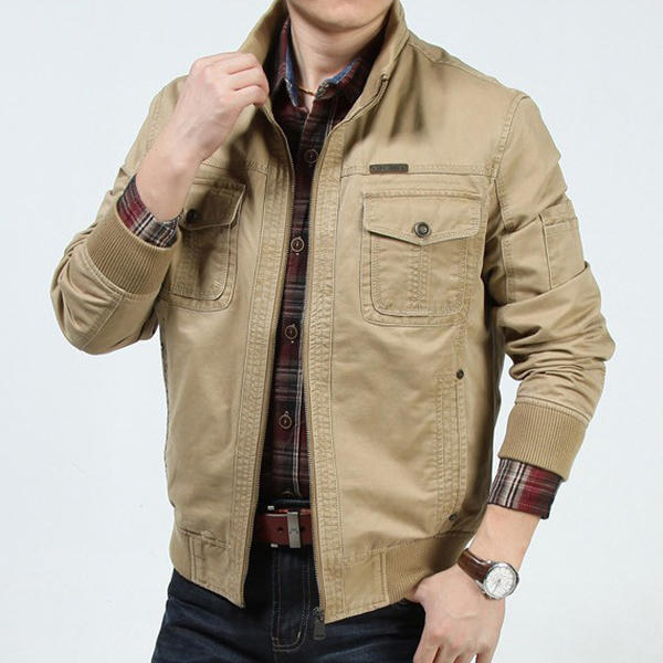 Hommes Militaire Coton Wearable Poitrine Poches Zipper Outwear Jacket