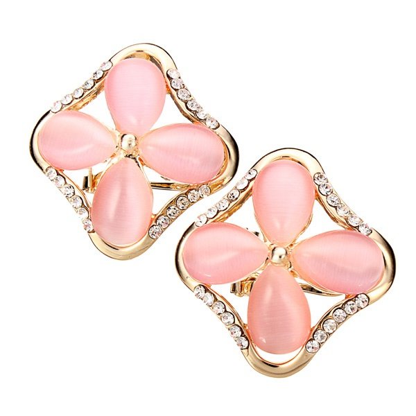 • Plaqué cristal multicolore carré fleurs d'opale oreille boucles d'oreille en or