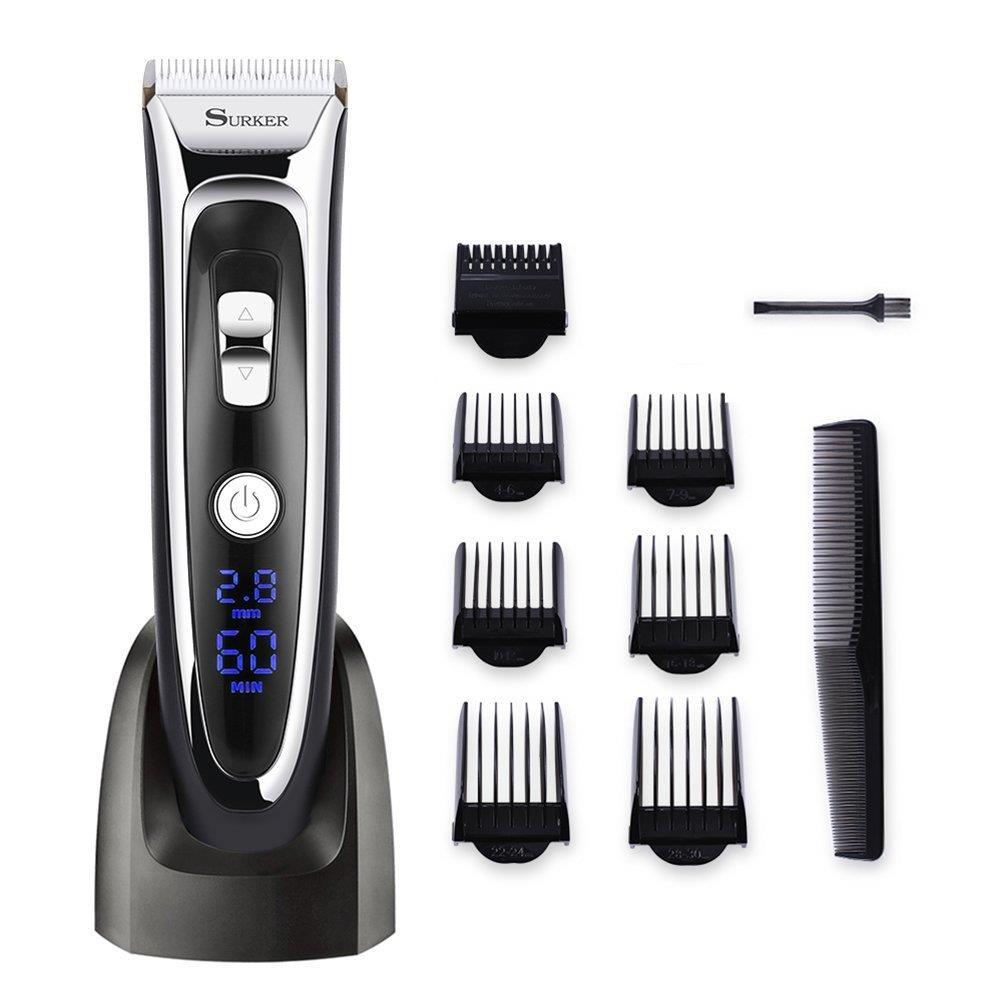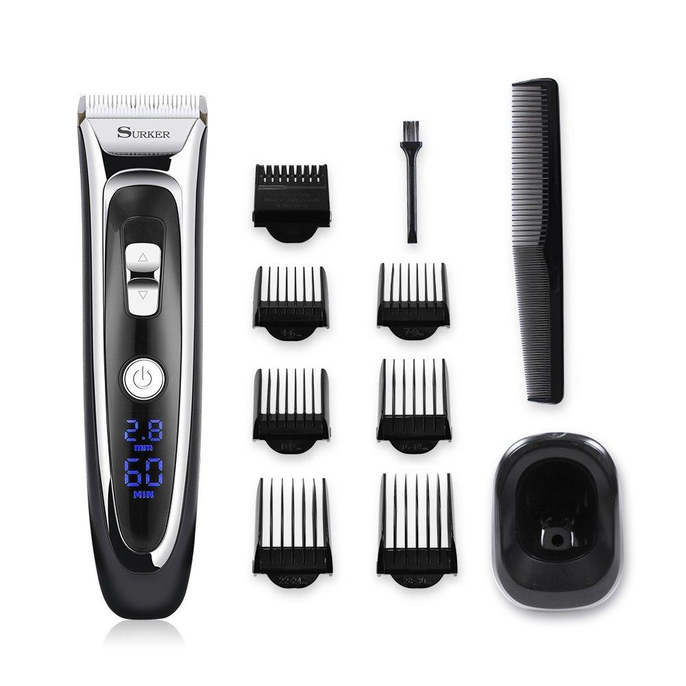 • SURKER Coupe-cheveux Rechargeable Coupeuse Barbe Rasoir sans Couture Lavable Affichage LED Lame en Céramique
