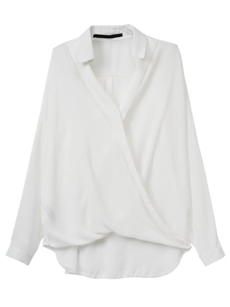 • Sexy asymétrique croix v dame de bureau de cou en mousseline de soie revers blouse