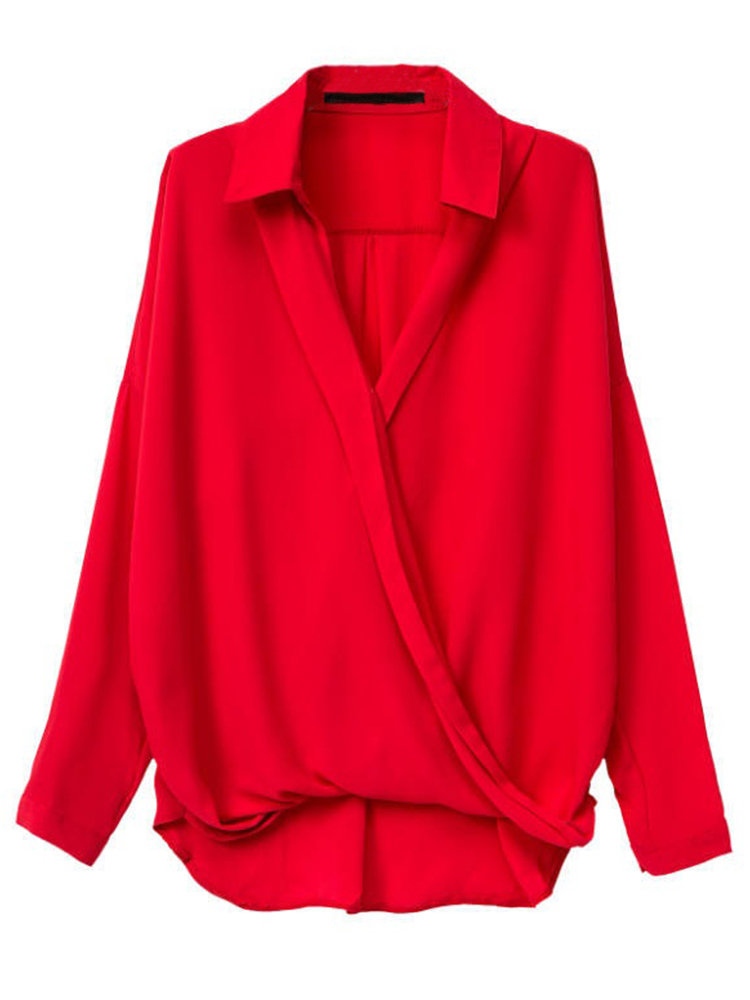 Sexy asymétrique croix v dame de bureau de cou en mousseline de soie revers blouse