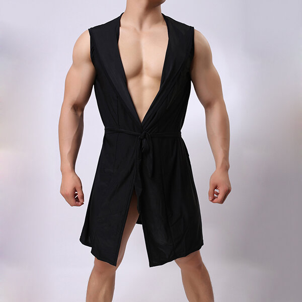 Sexy Ice Silk Soft Robe de peignoir avec ceinture