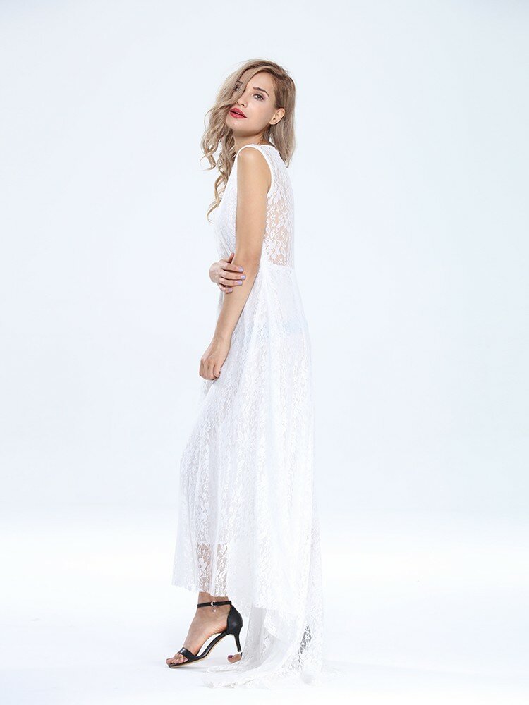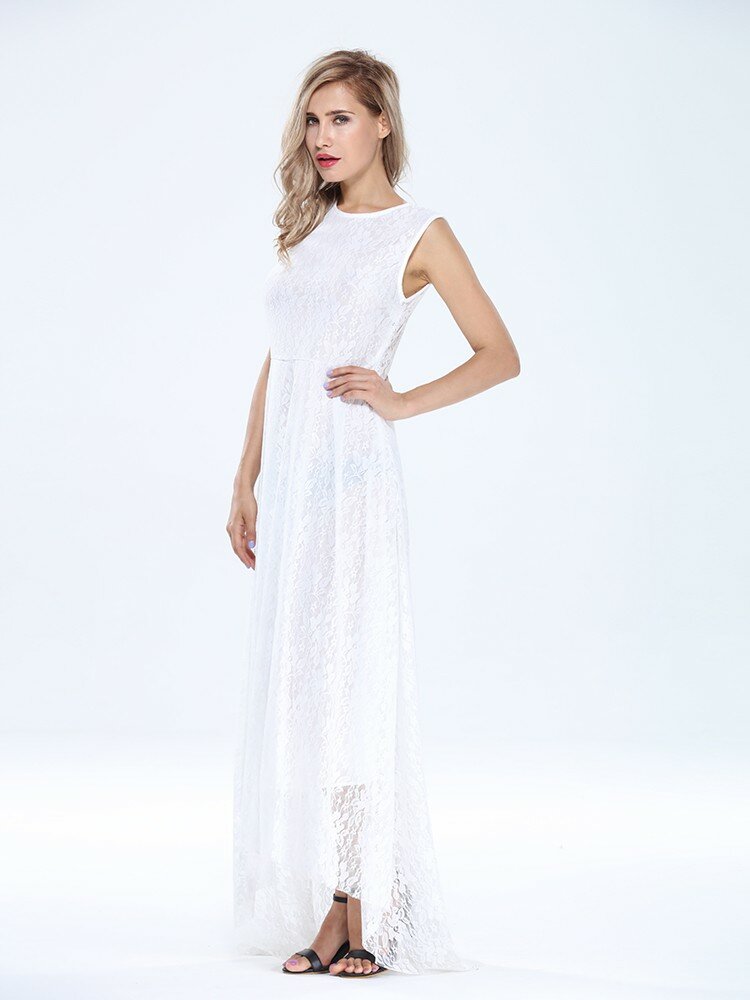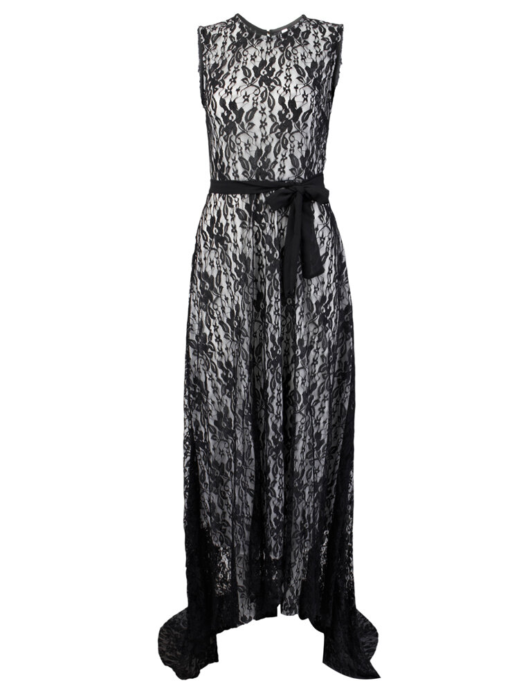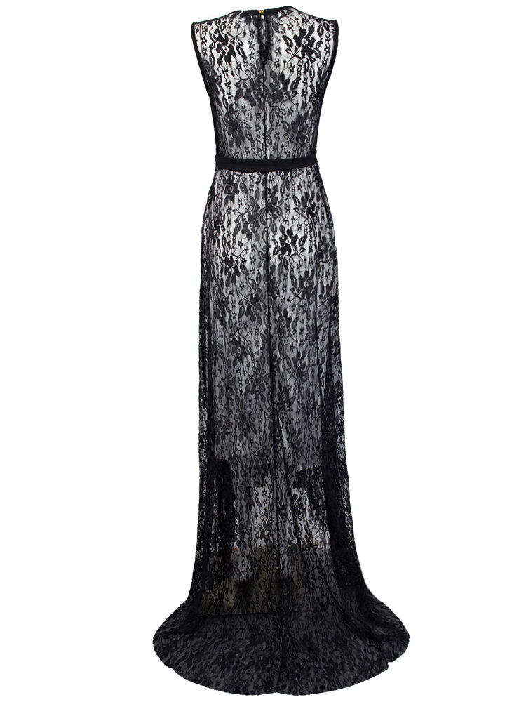 Dentelle sans manches robe de cocktail maxi de soirée sexy pour les femmes avec ceinture COD
