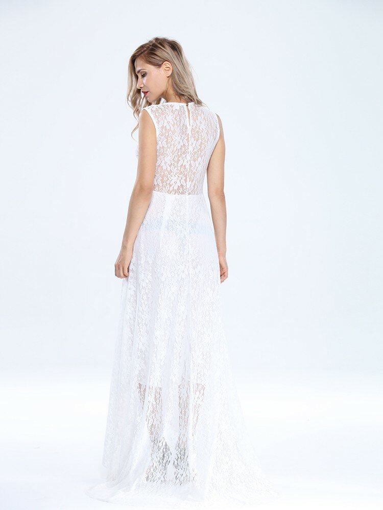 • Dentelle sans manches robe de cocktail maxi de soirée sexy pour les femmes avec ceinture