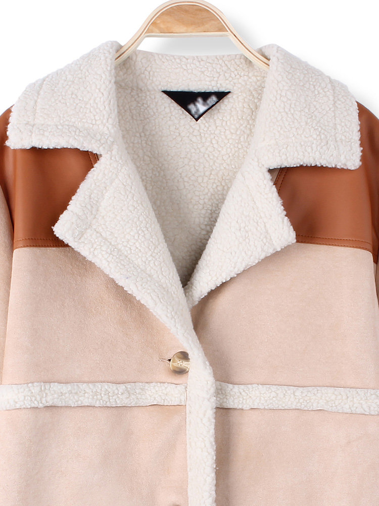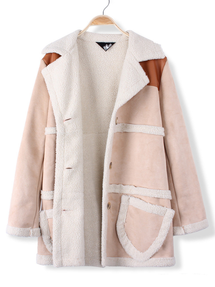 • Les femmes casual laine d'agneau chaud épaissir revers long manteau