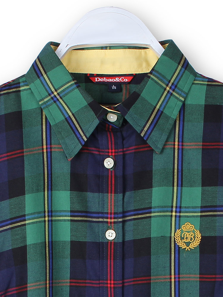 • coton des femmes touche blouse à carreaux baissez chemise à manches longues