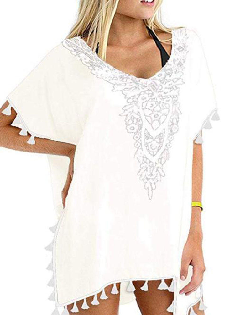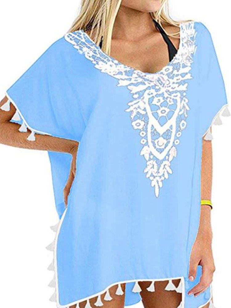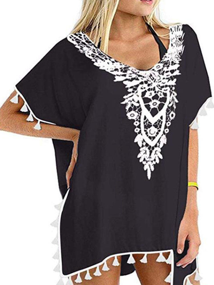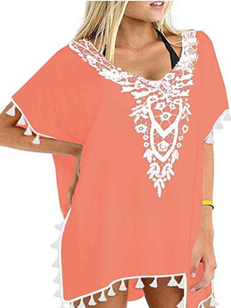 Femmes au crochet en mousseline de soie pompons Beach Cover Ups COD