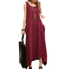 Femme Occasionnelle Maxi Robe Vintage Sans Manches en Coton