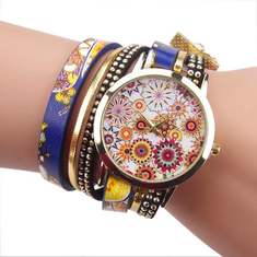 Mode folk-personnalisés fleur de style gros cadran dames bracelet femmes montre à quartz montre