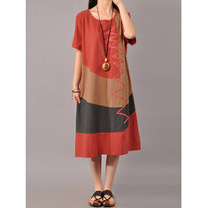 S-5XL Femme Occasionnelle Robe à Manches Courtes Splice Lâche O-Cou Mi-Longues