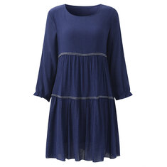 Maxi Robe Vintage Solide Lâche Col Rond en Coton à Manches Longues Pour Femmes